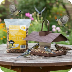 Sercem kategorii jest marka 51Feed – szeroka gama produktów zaprojektowanych pod realne warunki ogrodów i karmników: ekonomiczne mieszanki „drobne ziarno”, słonecznik czarny, kule tłuszczowe w różnych pakietach oraz gotowe zestawy startowe (kule + karmnik). To rozwiązania cenione za dobrą relację ceny do składu, wygodę podawania i powtarzalną jakość, która sprawdza się w dokarmianiu zimowym i całorocznym. Jeśli szukasz „tania karma dla dzikich ptaków do karmnika”, „kule tłuszczowe 100 szt.” czy „słonecznik dla ptaków ogrodowych 10 kg” – 51Feed ma gotowe odpowiedzi.