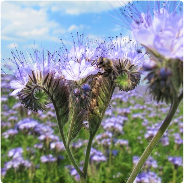 Facelia błękitna, należąca do rodziny ogórecznikowatych, jest jednoroczną rośliną miododajną. Jej głęboki i dobrze rozwinięty system korzeniowy pozwala na pobieranie substancji odżywczych z głębszych warstw gleby. Facelia ma niewielkie wymagania glebowe i doskonale zacienia glebę, co skutecznie ogranicza zachwaszczenie na polu. Ponadto, pozytywnie wpływa na dostępność fosforu w glebie dla kolejnych upraw. Jest szczególnie polecana jako przedplon przed uprawą kukurydzy, zbóż, warzyw i roślin okopowych.
