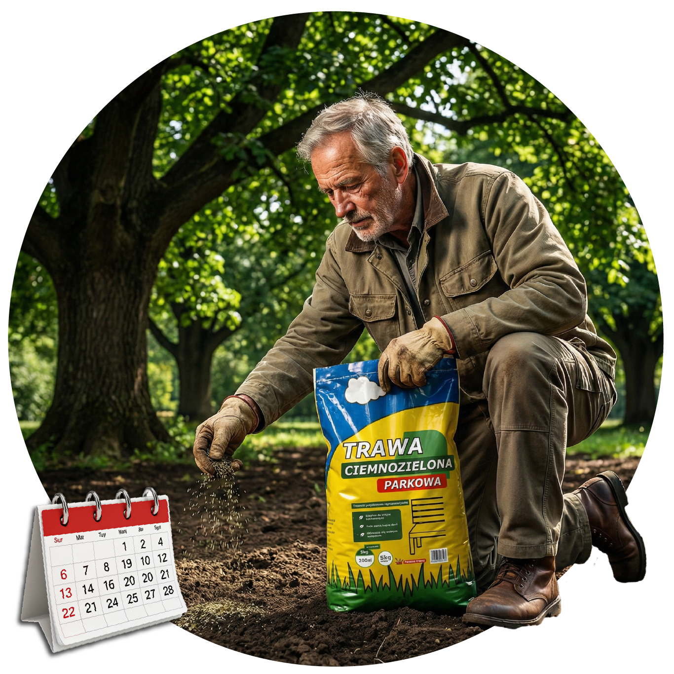Nasiona wysiewamy ręcznie (1kg/40m²) stosując siew krzyżowy na całej powierzchni, połowę nasion wysiać wzdłuż, a połowę w poprzek terenu lub przy pomocy siewnika (1kg/50m²).