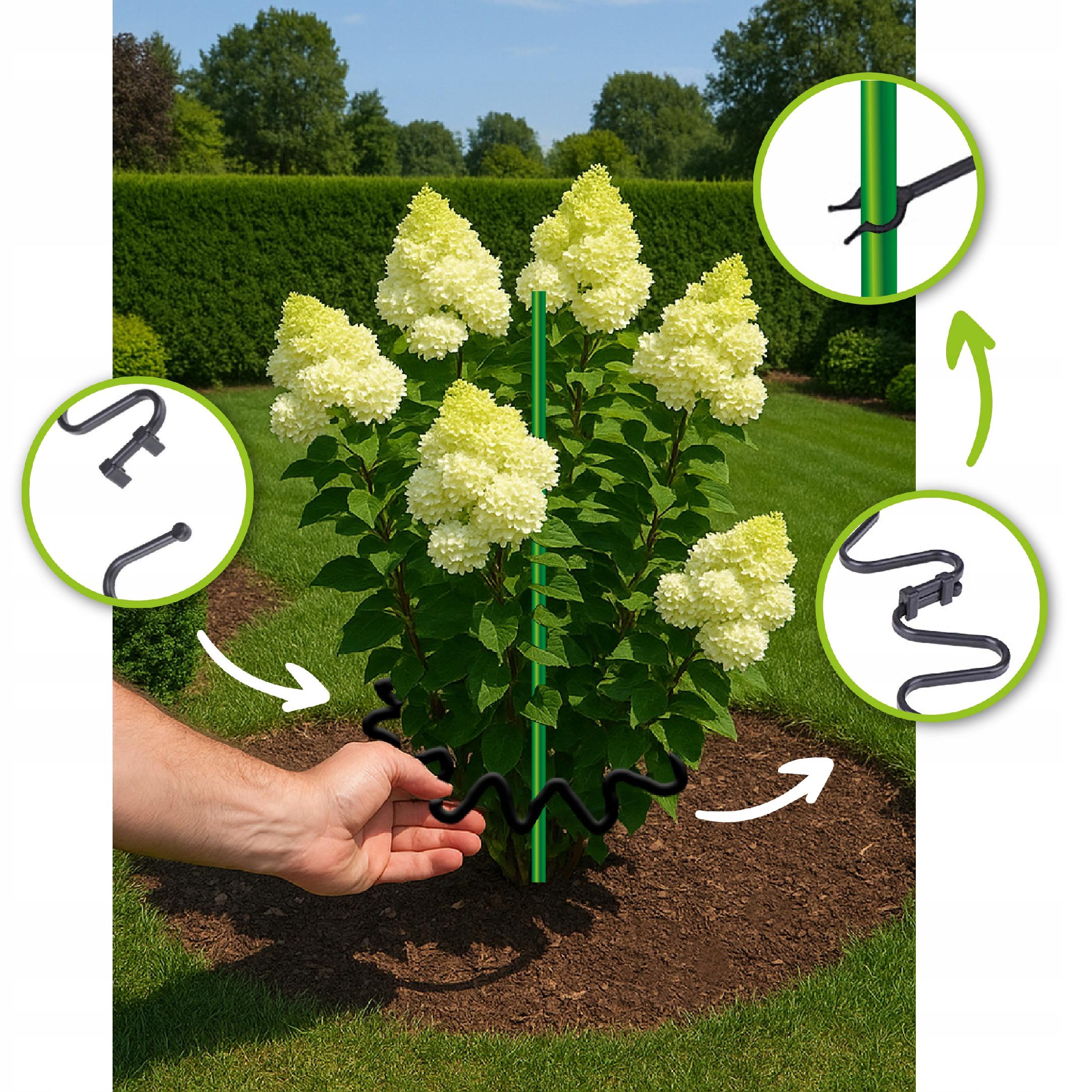 Tak się składa że wymyślono produkt, który ucieszy niejednego działkowicza – znakomicie utrzymuje hortensję jak i inne rośliny ogrodowe takie jak piwonie, trawy pampasowe, budleje, rudbekie, jeżówki, koleusy, mieczyki, floksy, róże pnące oraz wiele, wiele innych roślin. Niektórzy klienci używają obejm również do kwiatów domowych czy podtrzymywania papryki lub pomidorów podczas uprawy.