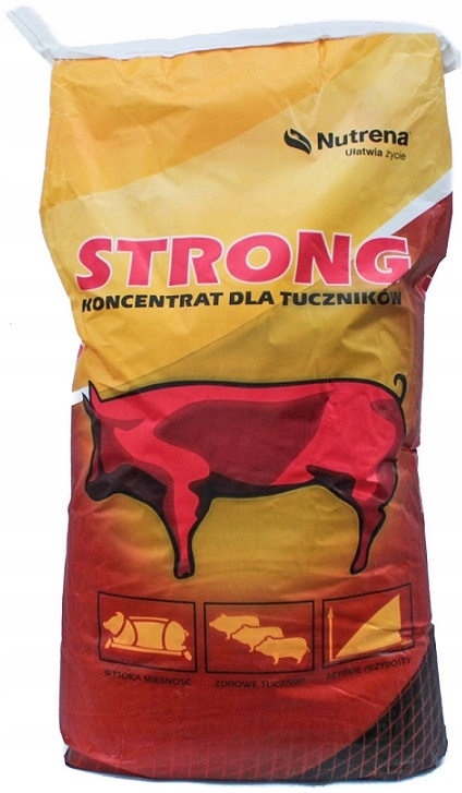 Koncentrat Nutrena Strong to specjalnie przygotowana mieszanka paszowa, która uzupełnia paszę w witaminy, minerały i aminokwasy niezbędne w żywieniu tuczników wysokomięsnych.