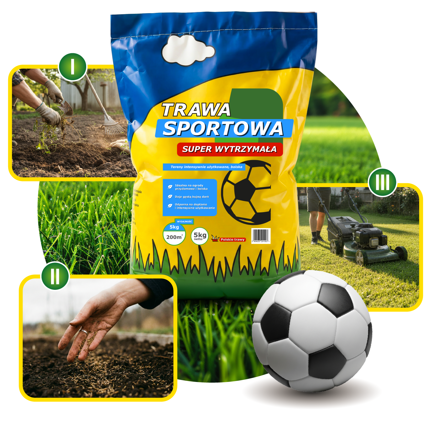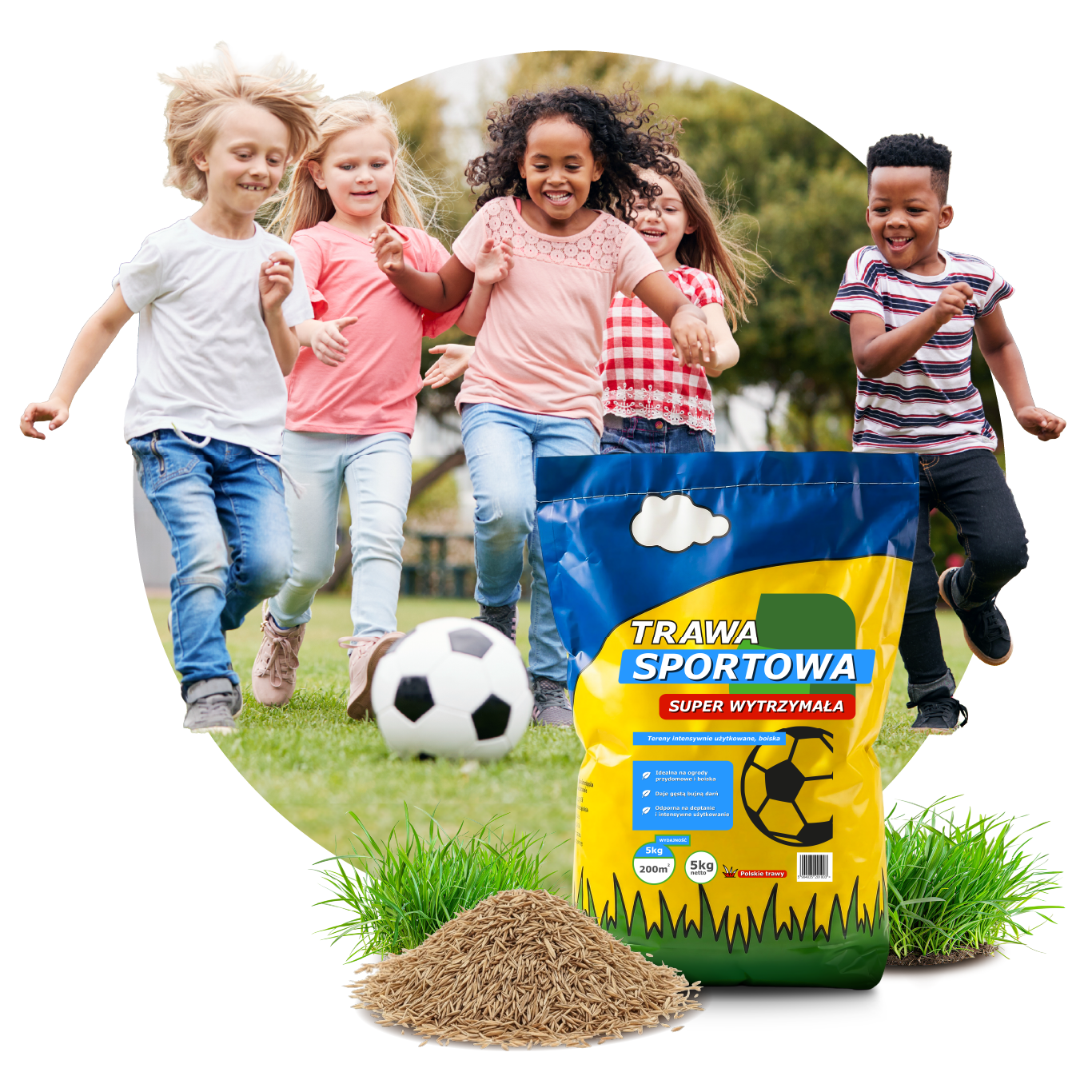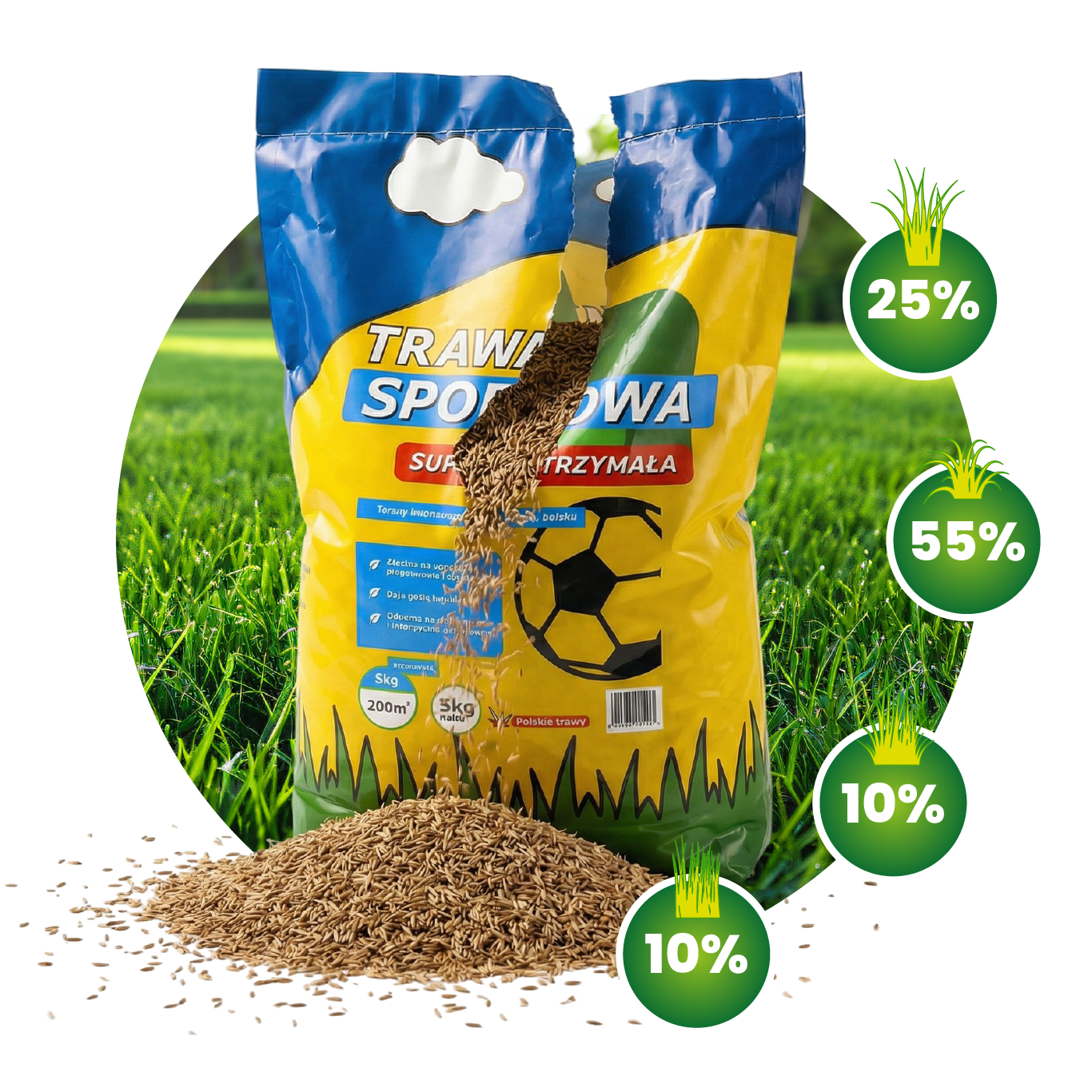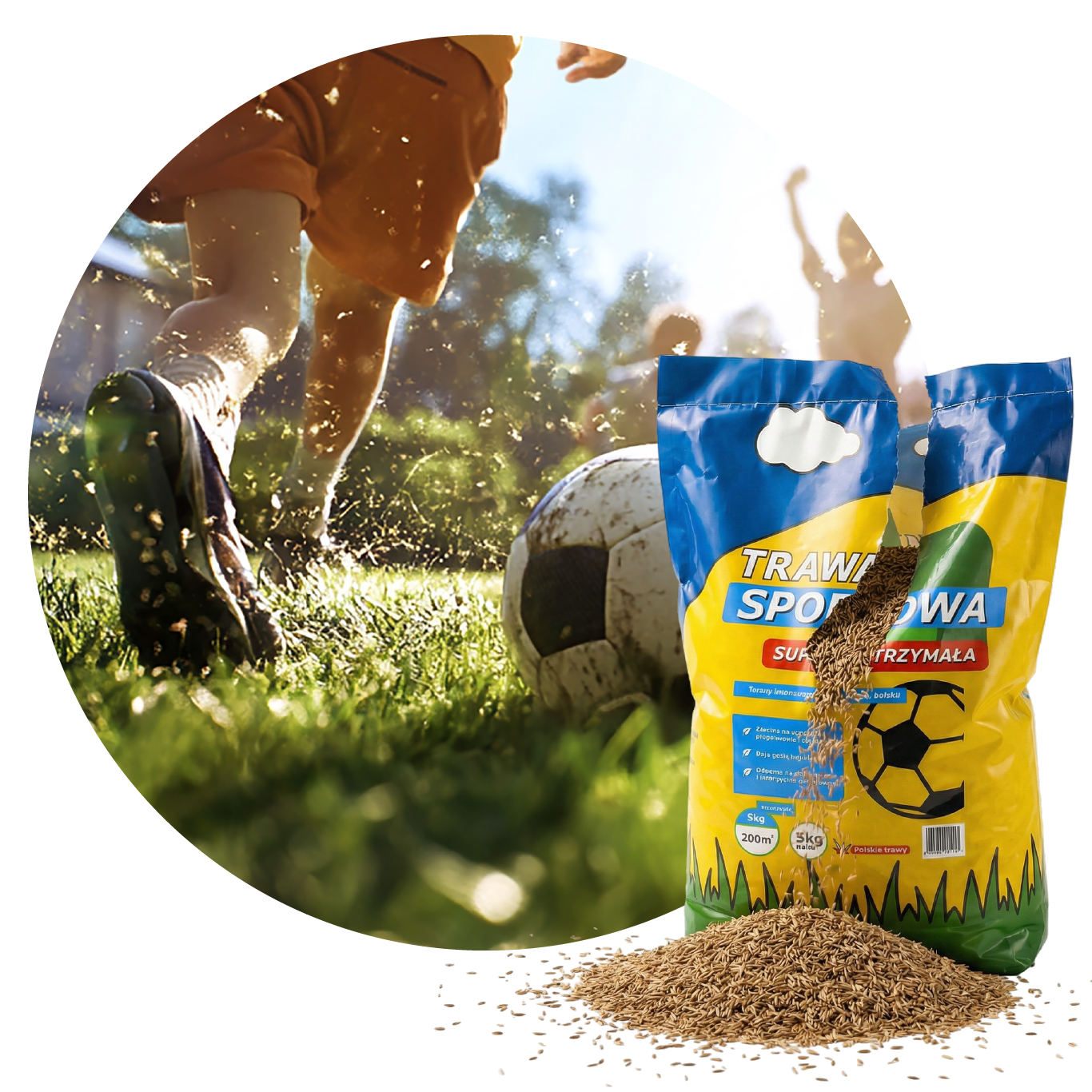 Trawa sportowa z racji swojej wyjątkowej trwałości na intensywne użytkowanie doskonale sprawdza się na boiskach, oraz ogródkach przydomowych. Mieszanka składa się z nasion odpornych na przygniatanie i rozrywanie podczas silnej eksploatacji.