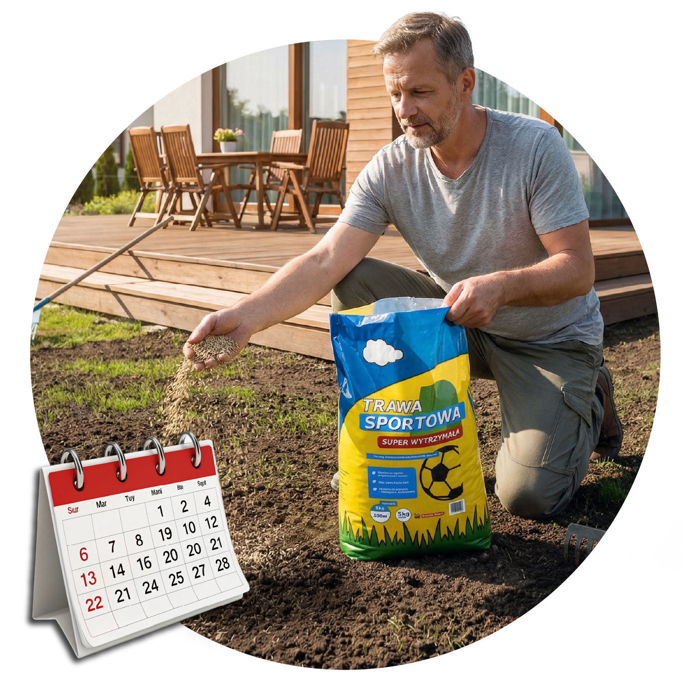 murawę można siać w lecie, ale lepiej tego unikać, bo gleba jest przesuszona, co utrudnia uprawę i wymaga olbrzymiej pracy nawadniającej.