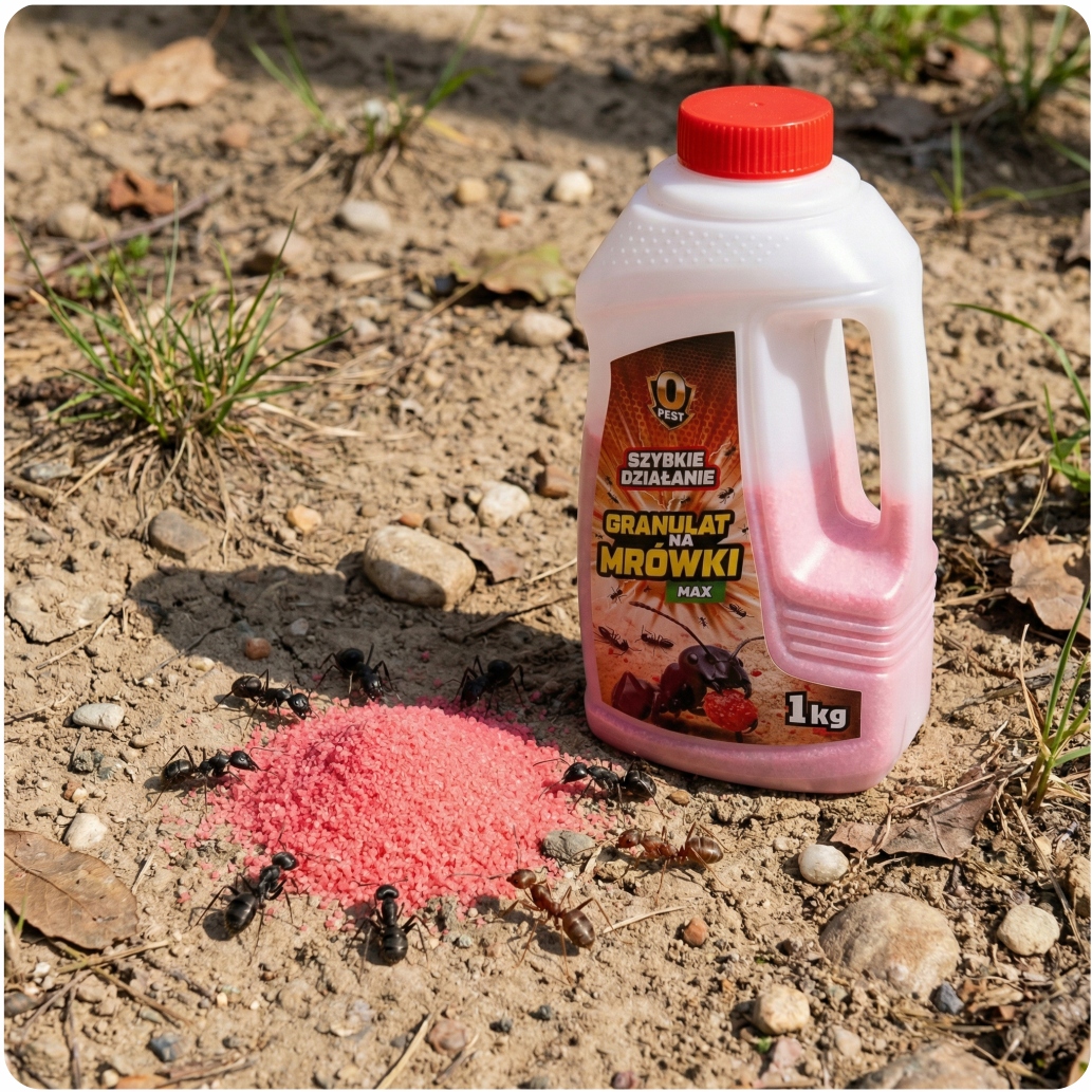 To świetna opcja, gdy mrówki regularnie wracają tą samą trasą – granulat pozwala trafić dokładnie w ich „szlak” i ograniczyć populację skutecznie, a przy odpowiednim zastosowaniu doprowadzić do zaniku kolonii.