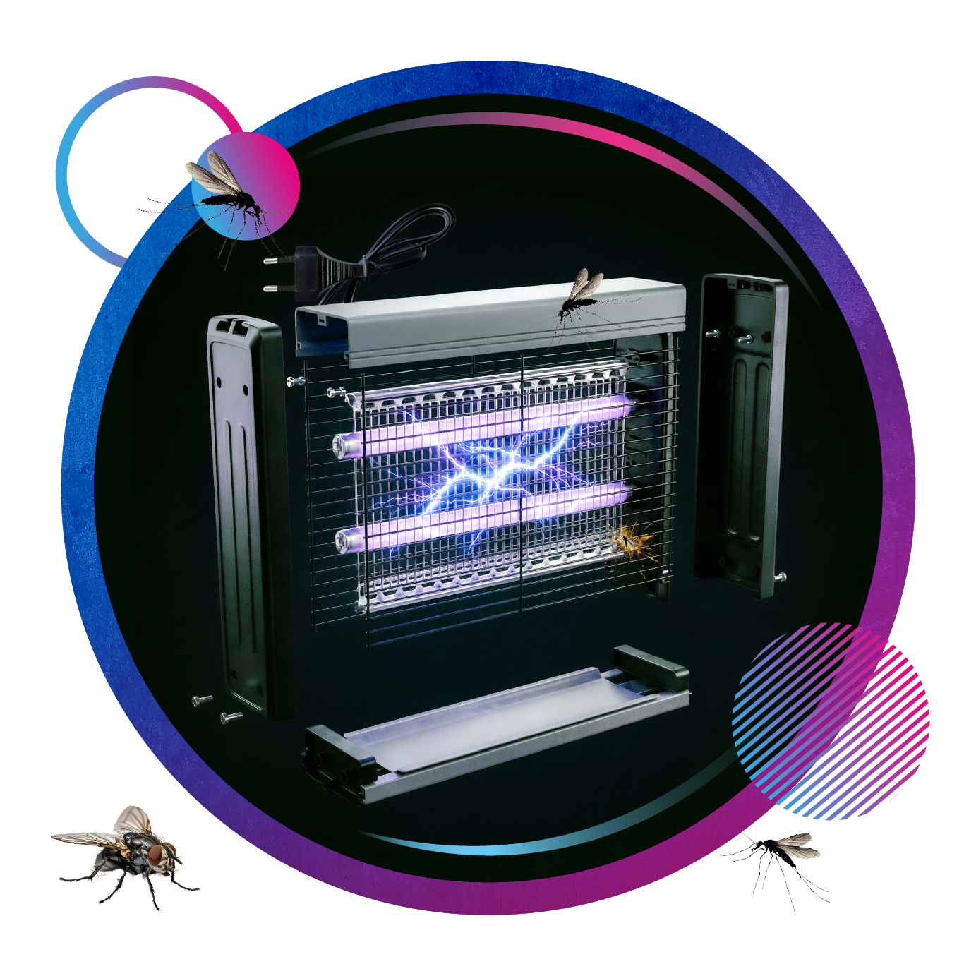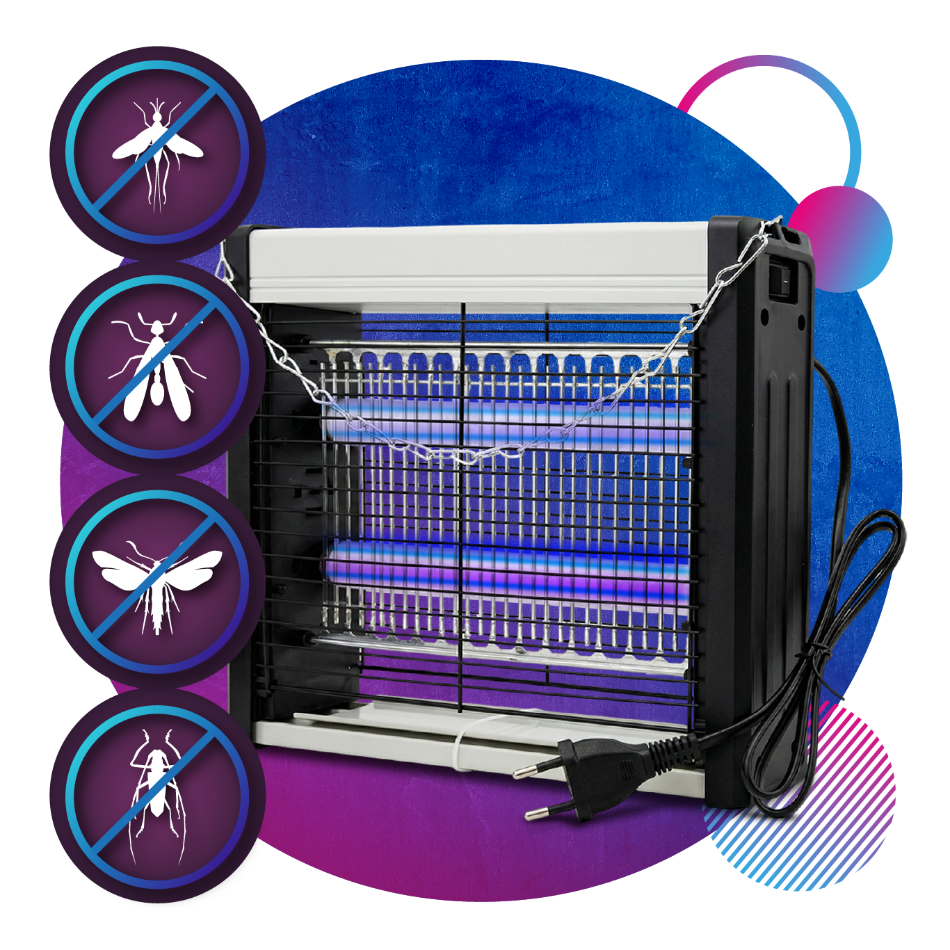 Masz dość komarów, much i innych latających intruzów? Ta lampa owadobójcza UV skutecznie redukuje owady w pomieszczeniach i wokół domu, bez chemii, bez sprayów i bez nieprzyjemnych zapachów. Emituje delikatne światło UV, które przyciąga insekty, a następnie eliminuje je błyskawicznie dzięki siatce o wysokim napięciu.