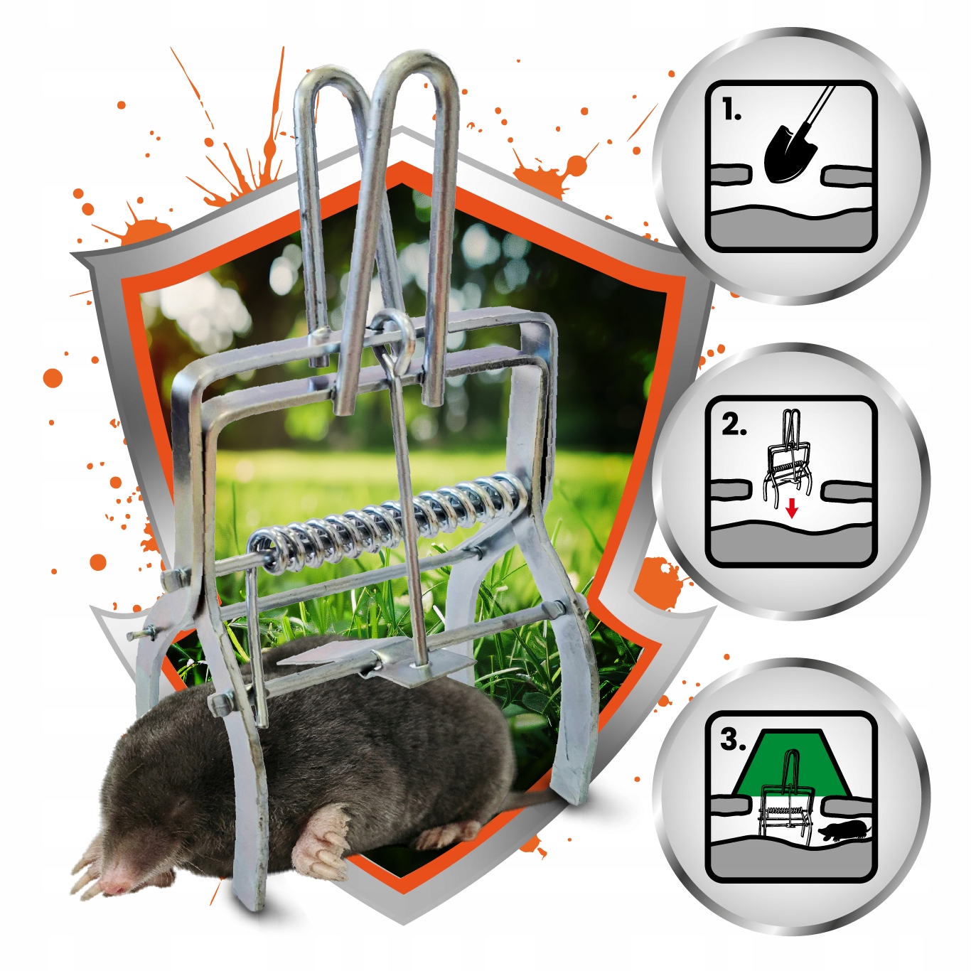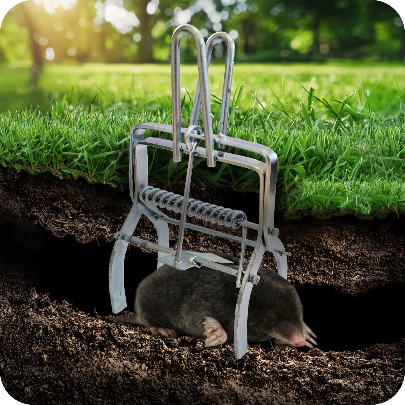 Łapka na krety to rewelacyjne rozwiązanie do zabezpieczenia obszarów zielonych, tj. trawniki, ogrody, pola golfowe, grządki warzywne i owocowe, itd. Skuteczność pułapki polega na bardzo czułym mechanizmie zapadkowym, który po wykryciu ruchu natychmiast się zatrzaskuje, chwytając gryzonia.