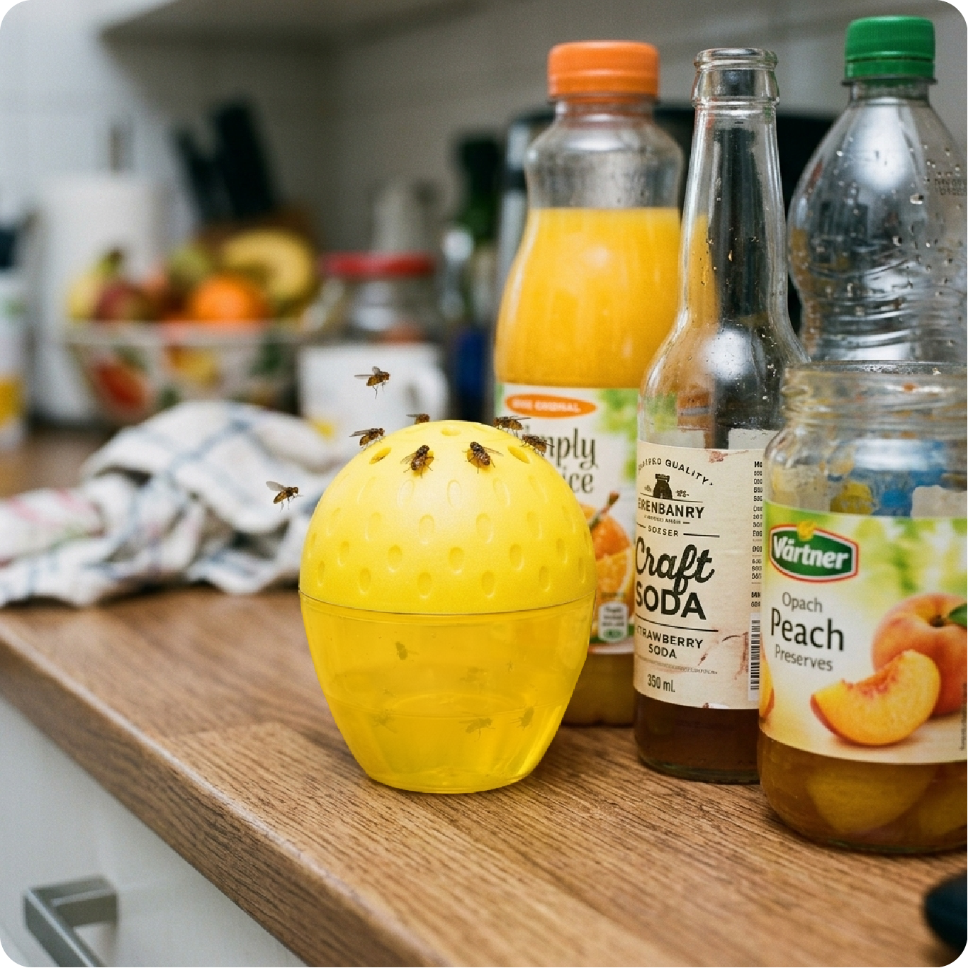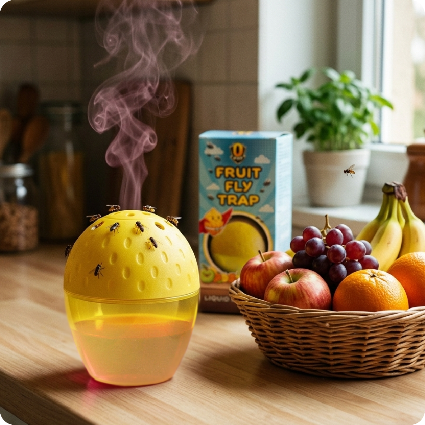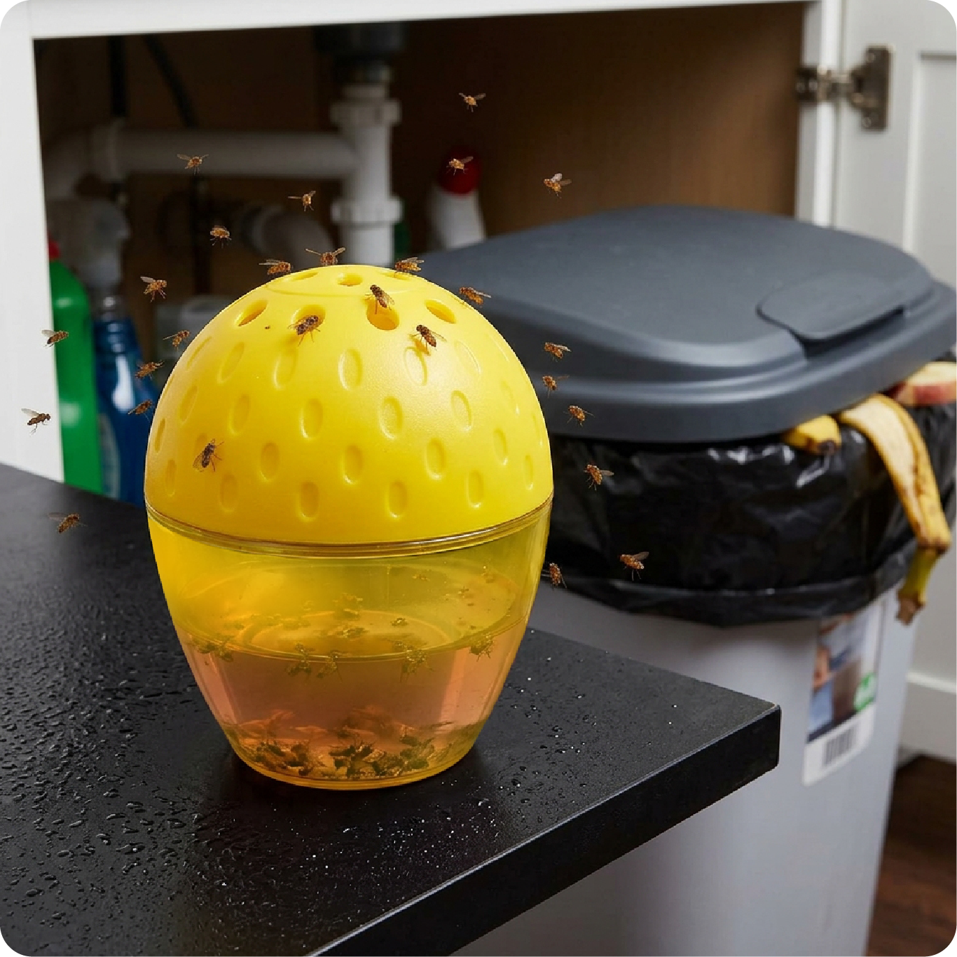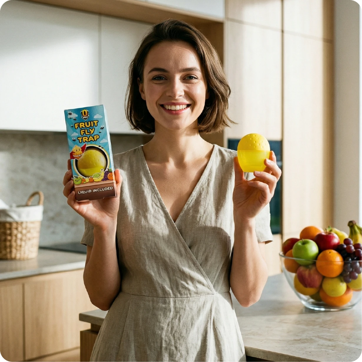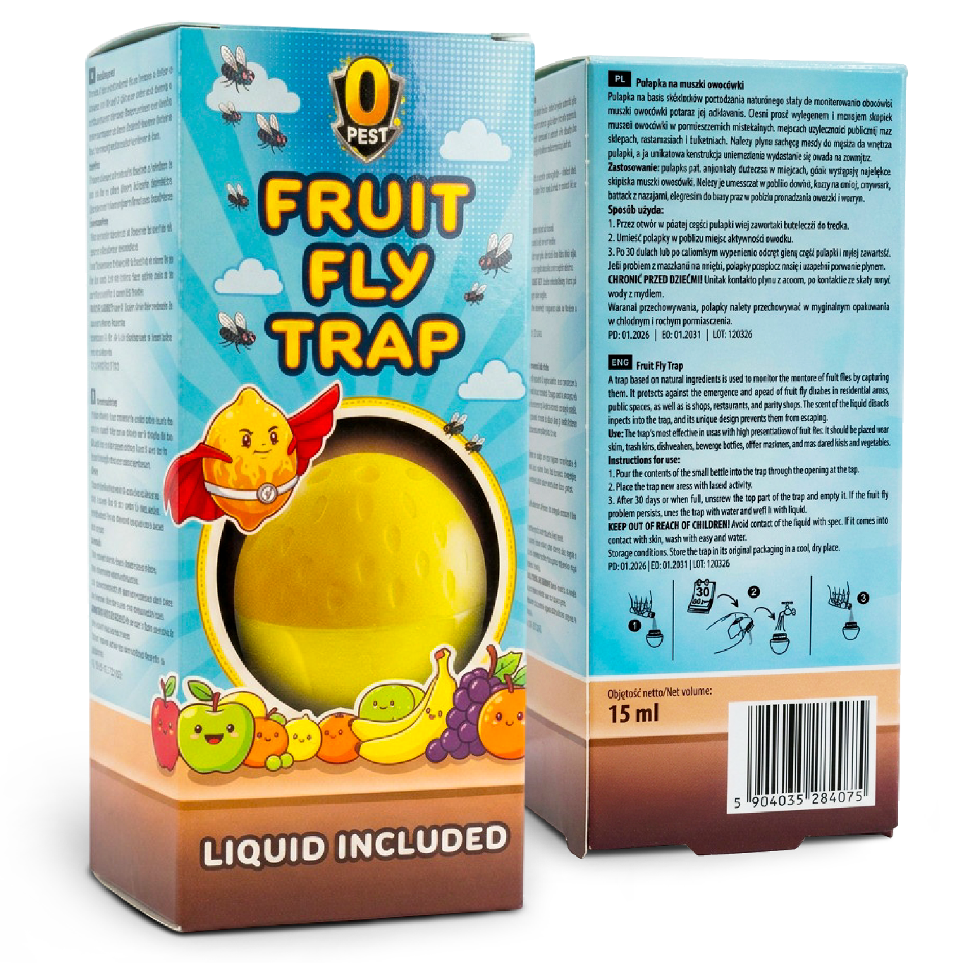 Pułapka na bazie składników pochodzenia naturalnego służy do monitorowania obecności muszki owocówki poprzez jej odławianie. Chroni przed wylęganiem i rozwojem skupisk muszek owocówek w pomieszczeniach mieszkalnych, miejscach użyteczności publicznej oraz sklepach, restauracjach i cukierniach. Aromat płynu zachęca owady do wejścia do wnętrza pułapki, a jej unikatowa konstrukcja uniemożliwia wydostanie się owada na zewnątrz.
