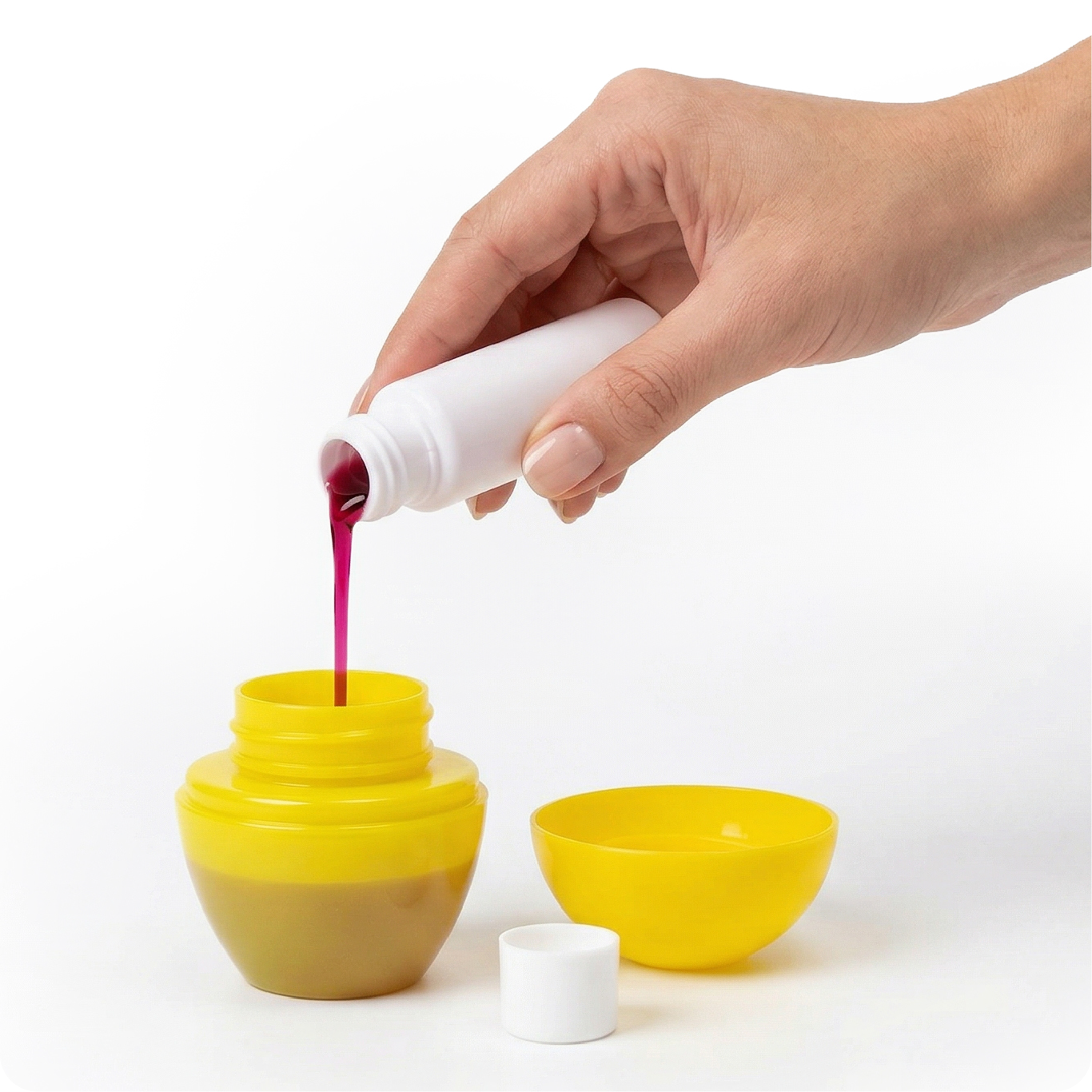 - Przez otwór w górnej części pułapki wlej zawartość buteleczki do środka.